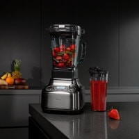 Новый флагман BORKНовинка объединила сразу 2 решения: стационарную чашу объёмом 2 л и съёмный стакан объёмом 0,7 л, который удобно брать с собой. Мощный двигатель 2400 Вт и запатентованная система ProKinetix из 4 стальных ножей эффективно измельчают любые ингредиенты: от ягод и трав до льда и орехов.Эффективное измельчение12 скоростей позволяют смешивать продукты любой консистенции. 5 автопрограмм предназначены для быстрого приготовления фруктовых и зелёных смузи, замороженных десертов, крем-супов и ледяной крошки. Для удобства вы можете запустить таймер для автономной работы блендера до 6 минут с заданными параметрами.Приготовление теплых супов-пюреПри работе на максимальной скорости в режиме SOUP смесь нагревается до 65 °C. В результате вы получаете тёплый овощнойсуп-пюре идеальной консистенции нажатием одной кнопки.Продуманная конструкцияСтальной корпус отличается надежностью и долговечностью. Блендер B805 оснащен умной системой охлаждения: она активируется только при повышении температуры, а не работает постоянно. В результате снижается уровень шума при работе.Дополнительная вакуумная насадкаВы можете заказать насадку (не входит в комплект) для создания вакуума в чаше и измельчения ингредиентов без контакта с кислородом. Приготовленный таким способом смузи, соус или крем-суп сохраняет в себе максимум витаминов и имеет более интенсивный вкус, насыщенный цвет и безупречно гладкую текстуру.