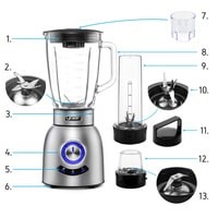 3 НАБОРЫ ЛЕЗВИЙБлендер оснащен 3 наборами лезвий из нержавеющей стали, которые легко измельчают фрукты, овощи и измельчают лед. При подаче мощности 1000 Вт лезвия позволяют быстро получить мягкую текстуру смузи.Специальные лезвия для кувшина - 6 стальных лезвий, предназначенных для полного измельчения или измельчения содержимого кувшина.Специальные лезвия для чашек - 6 стальных лезвий, расположенных в вертикальном положении, позволяют приготовить полезный смузи в удобной чашке.Специальные лезвия для кофемолки - плоские лезвия для всестороннего измельчения кофе, орехов или зелени.19500 об / мин.Максимальная емкость кушина 2,5 л.Прочный стеклянный кувшин с профилированным носиком, функциональная емкость кувшина: 1,5 л.6 лезвий из нержавеющей стали.ПредохранительРучка с подсветкойПанель управления с 3 автоматическими программамиКрышка кувшина со съемной меркой.Эргономичная ручка кувшинаПрочная чашкаСпециальный набор лезвий для чашекУдобная завинчивающаяся крышка чашкиАвтоматическое количество программ: 3Противоскользящие ножки, отверстие для крышки кувшина-4,5 см, измеритель крышки кувшина, функциональные клавиши с подсветкой.В комплекте идет удобная чашка с крышкой, которую можно брать с собой на работу или в школу. Благодаря модульной конструкции чашку можно подсоединить прямо к основанию блендера, чтобы приготовить готовый смузи всего за несколько секунд. Емкость чашки 500 мл.Польская вилка питания 230 В ~ 50 Гц