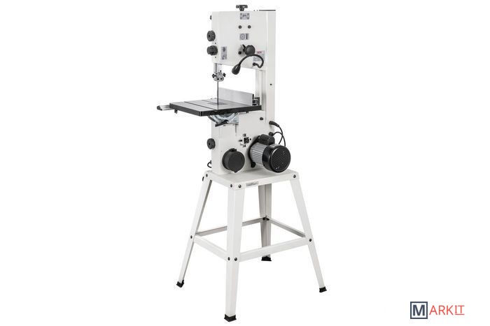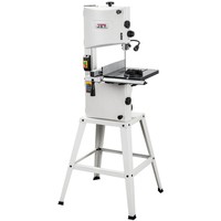- Две скорости движения пильной ленты- Роликовые направляющие пильного полотна- Регулировка наклона пильного стола- Регулировка высоты распиловки вращением рукоятки- Рабочий стол из чугунного литья- Регулируемый параллельный упор с эксцентриковым зажимом- Двухпозиционный регулируемый параллельный упор- Подвижный угловой упор с направляющей вдоль Т-образного паза- Светодиодная подсветка рабочей области- Комплект опорных ног для напольной установкиJWBS-10S – напольная ленточная пила с трехопорными роликовыми направляющими, чугунным рабочим столом и двумя скоростями, предназначенная для любительской эксплуатации. Ее рабочие параметры позволяют «распускать» довольно крупные заготовки с высотой до 152 мм, предусмотрен наклон стола для выполнения скошенных резов.Переустановив ремень, можно уменьшить скорость движения полотна с оптимальных для неплотной древесины 800 м/мин до 400 м/мин, что позволяет избежать прижогов заготовок из твердых пород.Станок оборудован регулируемым двухпозиционным параллельным упором. Он имеет две рабочие поверхности: высокую для перпендикулярных столу резов и толстых деталей и низкую для наклонного пиления и для плоских заготовок. Упор перемещается вдоль направляющего профиля с миллиметровой шкалой; для удобства позиционирования по ней, на корпусе сделан «целик», состоящий из увеличительного стекла с риской. Также в комплект входит скользящий угловой упор с направляющей вдоль Т-образного паза.Базовая конструкция станка хорошо отработана, она используется давно при производстве многих схожих моделей и, в случае Jet JWBS-10S, имеет ряд дополнительных эксклюзивных улучшений. Хорошо продуманы и удобно реализованы некоторые «мелочи», вроде светодиодной подсветки или «ступенчатого» патрубка аспирации, позволяющего без всяких переделок подсоединить шланг любого из трех диаметров (50, 75 или 100 мм).