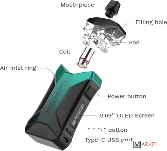 | Комплектация | - кабель для зарядки (USB Type-C)- картридж 5.5 мл- испаритель 0.3 Ом- испаритель 0.8 Ом- сменный дрип-тип- документация |