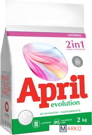 Markit » Средства для стирки и ухода за бельем » Стиральный порошок April Evolution 2 in 1 with fabric conditioner 2кг