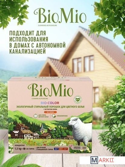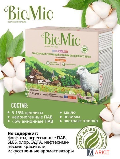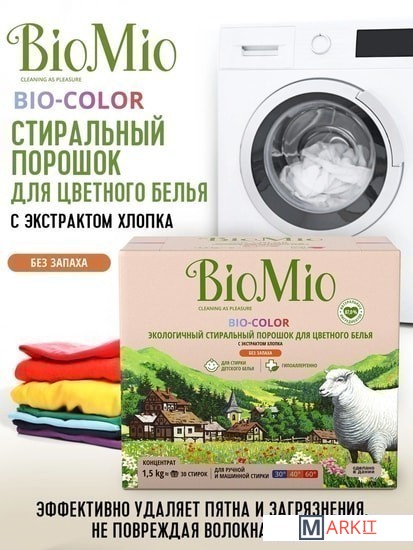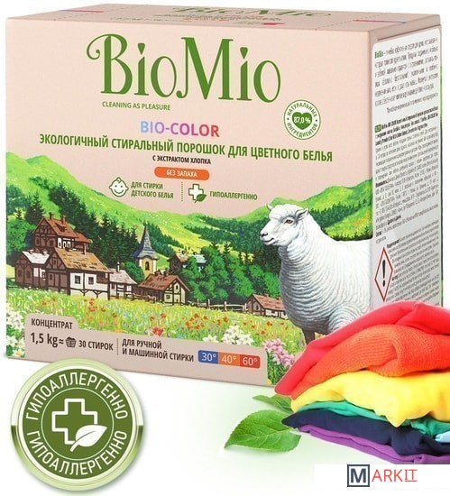 Markit » Средства для посудомоечных машин » Стиральный порошок BioMio BIO-Color для цветного белья с экстрактом хлопка 1,5 кг