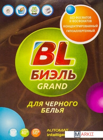 Средство моющее синтетическое BL Биэль Grand для черного белья предназначено для стирки в машинах автоматах окрашенных изделий из хлопчатобумажных, льняных, синтетических тканей и тканей из смешанных волокон в воде любой жесткости. Для изделий из шерсти и шелка используйте специальные моющие средства. Состав: мыло менее 5%, анионный ПАВ менее 10%, кислородсодержащий отбеливатель менее 10%, карбонаты менее 10%, неионогенные ПАВ менее 5%, поликарбоксилаты менее 5%, активатор отбеливателя менее 5%, энзимы, отдушка