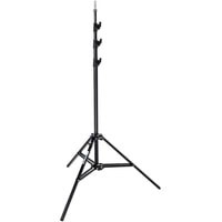 Черная алюминиевая стойка из 4 секций с 3 фиксаторами. Эта прочная стойкаспособна выдержать до 9 кг нагрузки и выдвигаться на высоту до 4 м. В верхней части стойки находится штифт-адаптер диаметром 5/8'' (16мм). Стойка также снабжена 1 выравнивающей ногой для максимальной устойчивости на неровной поверхности.