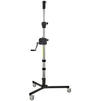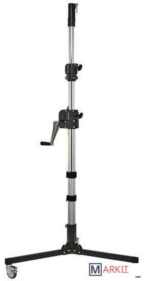 Стальная стойка с зубчатым подъемным механизмом для регулирования по высоте центральной колонны. 3 секции, 2 подъёмника, 1 выравнивающая ножка. В комплекте колеса с тормозными фиксаторами.