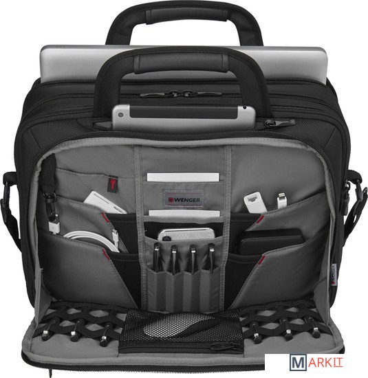 - Отделение для ноутбука с 14-16"Специальное отделение для ноутбука с возможностью расширения от 14 до 16''.- Отделение для планшетного компьютераКарман на молнии в верхней части портфеля предназначен для переноски планшетного компьютера.- Карман-органайзер для мелких предметовКарман-органайзер включает ключницу, многочисленные кармашки для пишущих принадлежностей, документов и карты памяти, мобильного телефона, проводов и адаптеров.- Карманы для вещей первой необходимостиДва кармана в передней части портфеля подходят для хранения аксессуаров и прочих необходимых вещей.- Рукав для крепления к чемодануСпециальный рукав позволяет зафиксировать сумку на телескопической ручке чемодана для удобного перемещения нескольких предметов багажа.- Съемный плечевой ременьСъемный, регулируемый по длине наплечный ремень с мягкой накладкой.-Увеличение объема на 3 смСпециальная молния позволяет раширить портфель на 3 см.