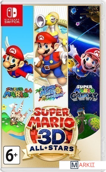 Откройте три грандиозных 3D-приключения Марио в Super Mario 3D All-Stars для Nintendo Switch! Этот особый набор содержит игры Super Mario 64, Super Mario Sunshine и Super Mario Galaxy. Все они оптимизированы для Nintendo Switch и включают обновленную HD-графику, поддержку Joy-Con, а также музыкальный плейер с саундтреком из всех трех игр!Игра Super Mario 64 стала ярким дебютом Марио в трехмерном мире, и все последующие 3D-приключения Марио унаследовали использующуюся здесь классическую схему управления. Отскакивайте от стен, делайте сальто назад и даже летайте, пока вы исследуете картины в замке принцессы Пич, чтобы собрать звезды силы и остановить Боузера!