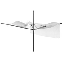 Навеска – 50 метров, максимальная нагрузка – 40 кг.Простой и удобный регулируемый «зонтичный» механизм сложения.Бесступенчатая регулировка на нужную высоту (129-187 см).Нет необходимости обходить сушилку – направляющие плавно поворачиваются.Всегда туго натянутые веревки – регулировка натяжения в трех положениях.Нижнее положение идеально подходит для сушки подушек.Бельевые веревки устойчивы к действию УФ и имеют нескользящий профиль.При необходимости удобная замена каждой веревки по отдельности.На всех направляющих предусмотрены специальные отверстия для плечиков.Удобна в хранении – прочная петелька для подвешивания.В комплекте: металлическое основание для установки сушилки (ø 45).Металлическое основание позволяет устанавливать сушилку без бетона.Отдельно предлагается пластиковое основание для установки в бетон, а также чехол.