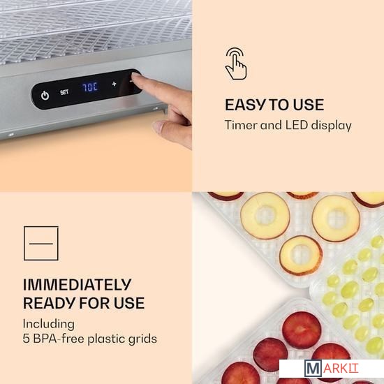 Markit » Сушилки для овощей и фруктов » Сушилка для овощей и фруктов Klarstein Silver