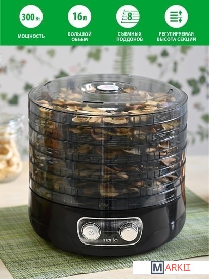 Markit » Сушилки для овощей и фруктов » Сушилка для овощей и фруктов Marta MFD-208PS (черный жемчуг)