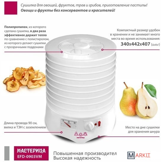 Markit » Сушилки для овощей и фруктов » Сушилка для овощей и фруктов Мастерица EFD-0903VM