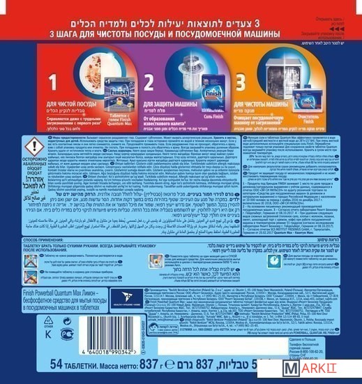 Markit » Средства для посудомоечных машин » Таблетки для посудомоечной машины Finish Quantum Max Лимон (54 шт)