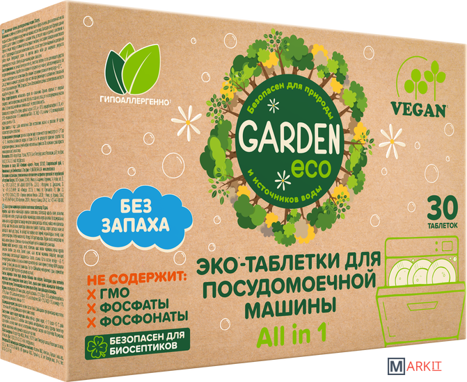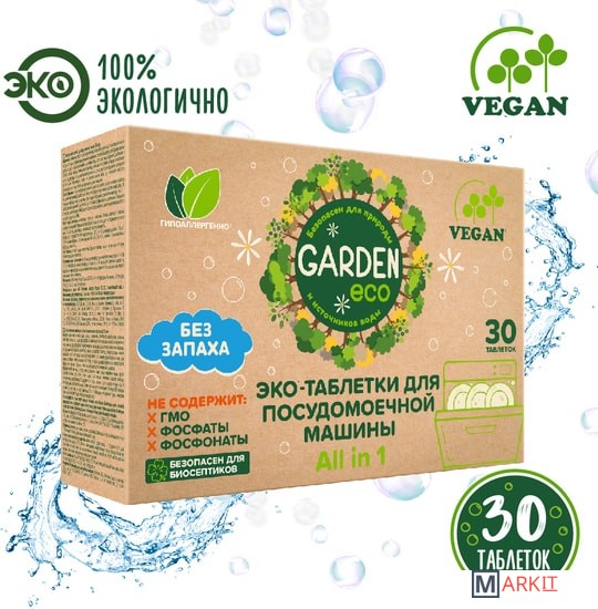 Markit » Средства для посудомоечных машин » Таблетки для посудомоечной машины Garden бесфосфатные (30 шт)