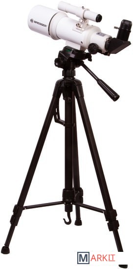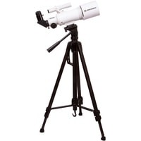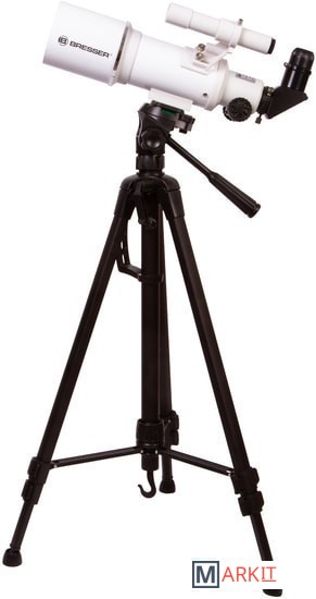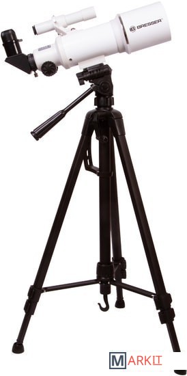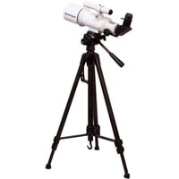 Этим телескопом можно изучать ближний космос и наземные объекты. Эта модель интересна богатой комплектацией – здесь есть даже держатель для смартфона, который позволит заниматься астрофотографией. Оптическая труба телескопа установлена на азимутальную монтировку. Она снабжена ручкой управления, которая упрощает процесс наведения. Сама труба достаточно небольшая, так как фокусное расстояние телескопа составляет всего 350 мм. Диаметр объектива – 70 мм, поэтому в телескоп хорошо видны сильно удаленные наземные объекты, Луна, планеты земной группы и отдельные яркие объекты дальнего космоса.