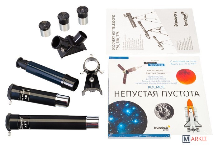 Телескоп Discovery Sky T60 – прекрасный выбор в качестве первого в жизни телескопа. Он достаточно простой по устройству, комфортен в управлении и комплектуется всем необходимым для наблюдений. Не нужно ничего докупать или долго осваивать – к изучению космоса можно будет приступить незамедлительно. Телескоп упакован в красочную брендированную коробку и дополнен познавательной книгой о космосе, рассчитанной на широкий круг читателей.