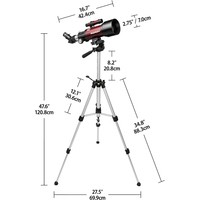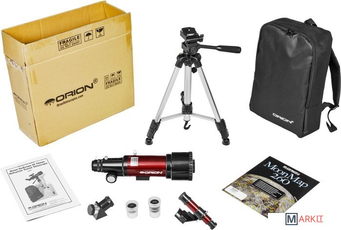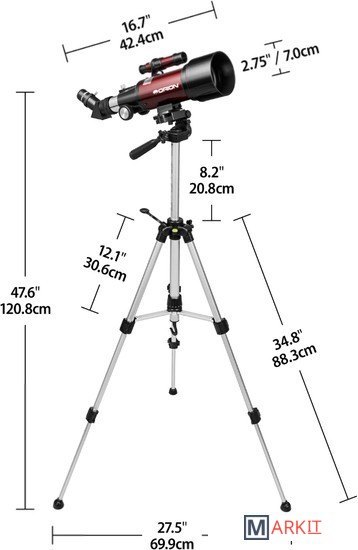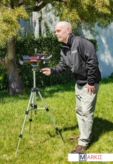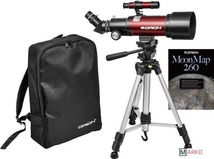 Компактный светлый рефрактор 70мм f/5.7 на фотоштативе, в комплекте рюкзак для переноски и диагональная призма для корректного отображения "лево-право", удобен для наземных наблюдений