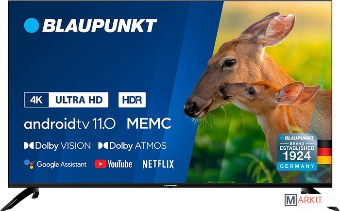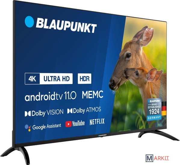 Blaupunkt обеспечивает экран сверхвысокой четкости, физическое разрешение которого составляет 3840 * 2160 (4K * 2K) с чипом декодирования 4K UHD, разрешение более чем в 4 раза выше, чем у телевизора Full HD 1080P. Изображение более предназначено для более тонкого просмотра.Новейшая технология High Dynamic Range (HDR), позволяющая добиться невероятной яркости, цвета, контрастности, детализации и размерности фильмов, снятых в этом формате. Теперь больше никаких компромиссов.Dolby Atmos выводит объемное звучание на новый уровень, обеспечивая истинное наслаждение 3D-звуком. Dolby Atmos становится обязательной функцией для серьезных поклонников кино. Dolby Atmos — это запатентованный аудиоформат, созданный для того, чтобы перенести тот же захватывающий, 360-градусный звук, который вы получаете в кинотеатре, в вашу гостиную Будьте готовы к новым впечатлениям с новым телевизором Blaupunkt.Новейшая операционная система уже на вашем телевизоре Blaupunkt. Еще больше улучшений производительности и конфиденциальности, а также множество новых функций, разработанных специально для телевизора.Быстро находите и воспроизводите любимые передачи, получайте ответы и управляйте своим домом. Ваш помощник теперь готов помочь на соответствующих устройствах Android TV. С вашего разрешения вы можете получить помощь по таким вопросам, как ежедневная сводка, информация о рейсах или поездке на работу. Узнайте последнюю информацию о погоде и пробках в вашем районе.Встроенное приложение chromecast передает любимые развлечения с телефона, планшета или ноутбука на телевизор. Телешоу, музыка, просмотр фильмов и даже прямые трансляции ТВ по жанрам через несколько приложений и источников одновременно, а затем воспроизведение шоу на большом экране. С помощью встроенного Chromecast вы можете передавать сигнал из 1000+ включенных приложений, таких как Netflix, Youtube, Google Play и др.Вы можете просматривать фотографии/музыку/фильмы, хранящиеся на устройстве USB, на экране телевизора.Теперь только те кнопки, которые вам действительно нужны. Netflix, Youtube, Amazon Prime Video и Shahid в один клик, не тратьте время, чтобы найти то, что вам нужно.