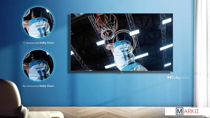 Технология оптимизации изображения с помощью искусственного интеллекта в сочетании с интеллектуальным распознаванием сценариев в режиме реального времени позволяет мгновенно захватывать каждый кадр и сопоставлять с облачной базой данных, а затем автоматически распознавать и оптимизировать настройки качества изображения в соответствии с конкретными требованиями изображаемой сцены.Полноматричная подсветка Direct Full Array в LED- телевизорах подсвечивает экран по всей диагонали. Это позволяет добиться равномерной яркости и значительно снизить протечку самой подсветки на ЖК-панель.Технология Dolby Vision — передовой формат HDR на базе технологий киноиндустрии. Она делает ваши развлечения более яркими и впечатляющими. Четкое, реалистичное изображение, которое позволит забыть, что вы смотрите телевизор.Благодаря технологиям постобработки звука DTS Virtual:X телевизоры Hisense воспроизводят поистине захватывающий звук. Используя передовые решения в области виртуального объемного звука на основе психоакустических алгоритмов, система DTS Virtual:X воспроизводит многоканальный звук до 7.1.4, создающий эффект погружения, через обычные горизонтальные динамики.Беспроводное соединение и Bluetooth позволяют транслировать любимые фильмы, музыку и многое другое на телевизор.Решение Smooth Motion на панелях 60 Гц объединяет две технологии: MEMO и динамическое подавление шума 3D Noise Reduction, которые создают переходные кадры и вставляют их между исходными. Это позволяет устранить дрожание и размывание изображения, а быстрые движения выглядят более плавными и четкими.Вместо обычного увеличения разрешения алгоритм Hisense UHD Al Upscaler вычисляет цвет соседних пикселей и автоматически вставляет пиксели нужного цвета кадр за кадром, создавая более детальное и четкое изображение. Изображение с разрешением 1080p, обработанное с помощью UHD Al Upscaler, приобретает глубину и детализацию 4K.Пульт дистанционного управления с голосовым управлением и минималистичными изящными кнопками со встроенной подсветкой позволяет в полной мере насладиться вечерним кинопросмотром.