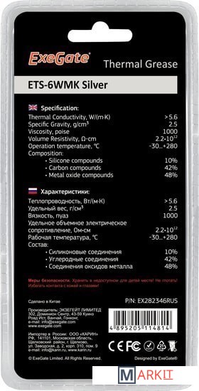 Markit » Системы охлаждения » Термопаста ExeGate ETS-6WMK Silver EX282346RUS (2 г.)