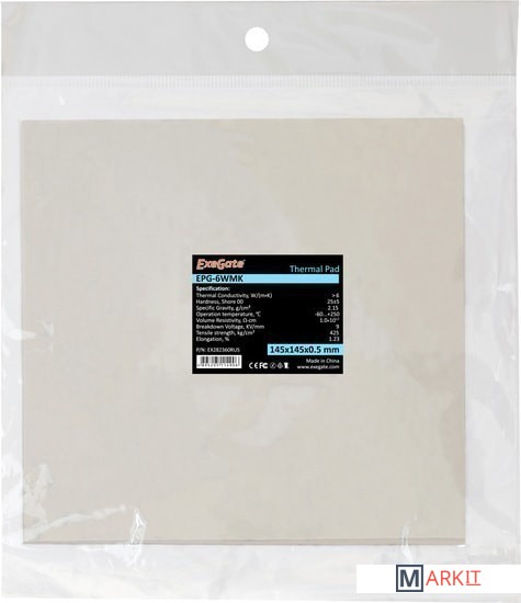 Markit » Системы охлаждения » Термопрокладка ExeGate EPG-6WMK EX282360RUS (145x145x0.5 мм)