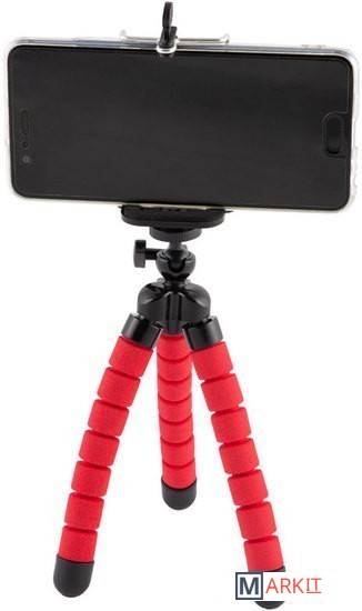 Трипод с гибкими ножками и держателем для телефона. Позволят закрепить телефон практически на любой поверхности: ветках деревьев, руле, заборе, или же просто поствить на стол.