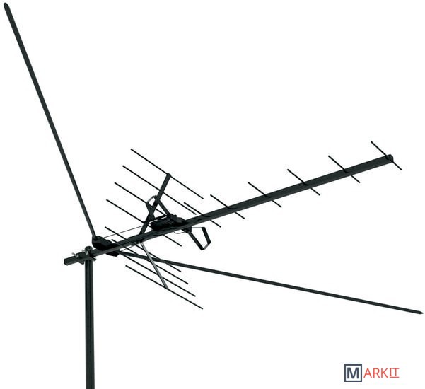 Антенна телевизионная наружная предназначена для стационарного приема сигналов аналогового и цифрового вещательного телевидения в диапазоне частот 48,5 – 100 МГц, 174-230Мгц, 470-862 МГц (1-12, 21-69 ТВ каналы).Конструктивно представляет собой антенну типа «волновой канал» дециметрового диапазона с узлом крепления вибраторов метрового диапазона. Вибраторы метрового диапазона крепятся под углом 120 градусов. Для установки антенны на мачту имеется узел крепления (скоба с зажимом).Дальность и качество приема зависят от места установки антенны, высоты её подвеса, мощности телевизионного передатчика, высоты подвеса передающей антенны, рельефа местности и ряда других факторов. Рекомендуется установка на удалении до 80 км от передающего центра.