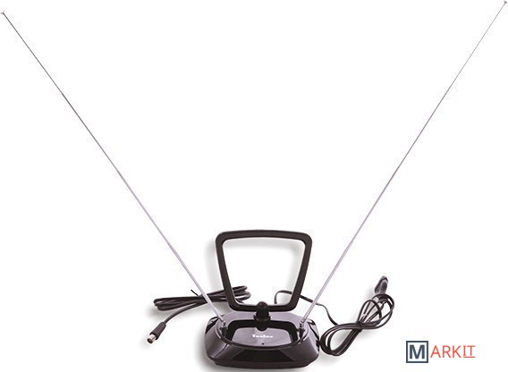 Телевизионная, комнатная антенна для приема аналогового и цифрового сигнала DVBT/T2. Антенна имеет регулятор коэффициента усиления, который позволит добиться изображения хорошего качества. Особенно это актуально в условиях городской застройки, где, наряду с прямым ТВ сигналом, обязательно имеется сигнал, отраженный от зданий. Рамка и телескопические дефлекторы, могут менять угол наклона, что позволит оптимально расположить в комнате.