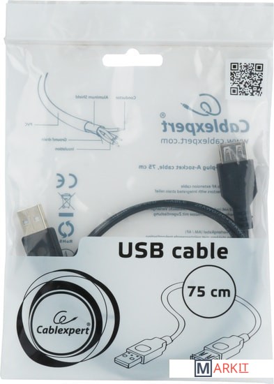 Markit » Кабели, адаптеры, разветвители » Удлинитель Cablexpert CC-USB2-AMAF-75CM/300-BK