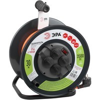 Удлинитель силовой на металлической катушке ЭРА RMx-4es-3x1.5-30m-IP44 с заземлением, с выключателем, ПВС 3x1,5м2, 4 розетки, 30м, степень защиты IP44. Мощность 16А/3500Вт. Используется для работы на строительных площадках или дачных участках. Удобен при работе с приборами находящимися удаленно от стационарной розетки. Например, газонокосилки, электрические, пилы, триммеры или электродрели. Провод в удлинителях Эра сделан из 100% меди, что делает его абсолютно пожаробезопасным. Рама удлинителя сделана из высокопрочной стали.