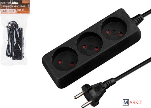Удлинитель ЮПИТЕР изготовлен только из качественных материалов в соответствии с ГОСТ60884-1 и предназначен для подключения бытовых электрических приборов к электрической сети переменного тока внутри помещения.Защитные шторки открываются нажатием только на две одновременно, что обеспечивает надежную защиту от случайного прикосновения к токоведущим частям (защита детей).Реальное сечение провода из чистой меди гарантирует работоспособность удлинителя при подключении нагрузки до 2200Вт.Латунная контактная группа для устойчивого электрического контакта между вилкой и розеткой.Присоединение проводов выполнено методом точечной сварки (в отличие от присоединения винтовыми зажимами), благодаря чему исключается возможность ослабления контактов в течение всего срока службы удлинителя.Удлинитель поставляется в индивидуальном прозрачном пакете с усиленным подвесом, на котором отображена вся необходимая информация.