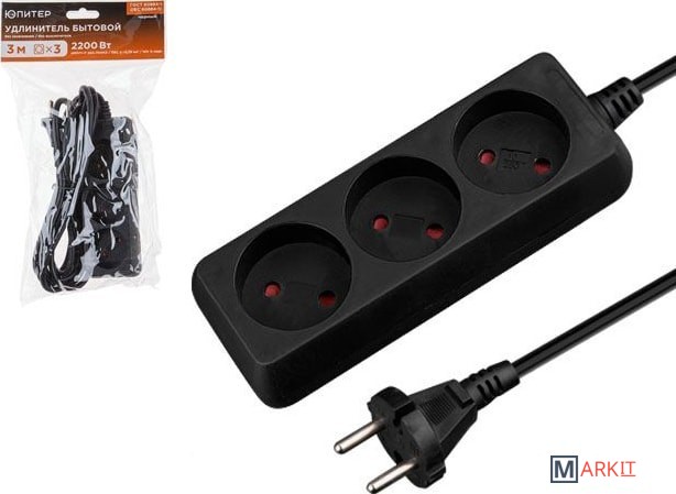 Удлинитель ЮПИТЕР изготовлен только из качественных материалов в соответствии с ГОСТ60884-1 и предназначен для подключения бытовых электрических приборов к электрической сети переменного тока внутри помещения.Защитные шторки открываются нажатием только на две одновременно, что обеспечивает надежную защиту от случайного прикосновения к токоведущим частям (защита детей).Реальное сечение провода из чистой меди гарантирует работоспособность удлинителя при подключении нагрузки до 2200Вт.Латунная контактная группа для устойчивого электрического контакта между вилкой и розеткой.Присоединение проводов выполнено методом точечной сварки (в отличие от присоединения винтовыми зажимами), благодаря чему исключается возможность ослабления контактов в течение всего срока службы удлинителя.Удлинитель поставляется в индивидуальном прозрачном пакете с усиленным подвесом, на котором отображена вся необходимая информация.