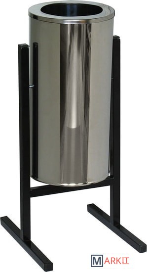 Мобильная уличная урна. В основании имеются отверстия для анкерного крепления к полу. Бак выполнен из зеркальной нержавеющей стали Снабжена фиксатором для бака. Цвет каркаса - черный, цвет бака - хром