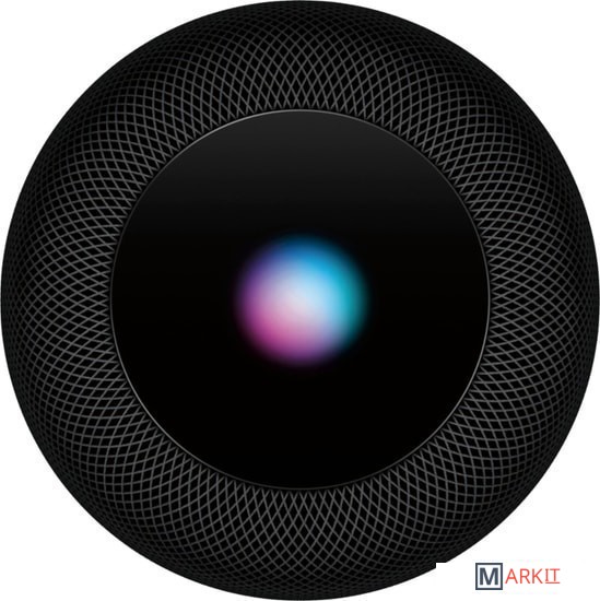 Apple HomePod - беспроводная умная колонка, оснащенная голосовым управлением, и использующая в своей работе персональный голосовой помощник Siri. Колонка включает в себя семь высокочастотных динамиков, направленных по кругу, вверху находится средне-низкочастотный драйвер. Для получения команд от пользователя и прослушивания любых звуков, окружающих прибор в колонке предусмотрено шесть встроенных микрофонов. В Apple HomePod используются 64-битный 2-х ядерный микропроцессор Apple A8 ARM-архитектуры и комплекс чипов для обеспечения беспроводной связи.Apple HomePod напрямую работает с сервисом Apple Music и воспроизводит плейлисты пользователя, вне зависимости от того, на каких устройствах они были созданы. Колонка способна к речевому взаимодействию с пользователем, воспроизведению музыки, аудиокниг, трансляции подкастов, через нее можно узнать новости, прогноз погоды, информацию о пробках на дорогах, о ближайших спортивных мероприятиях, установить будильник, оформить список задач в персональном расписании (поставить напоминания) и т.д.