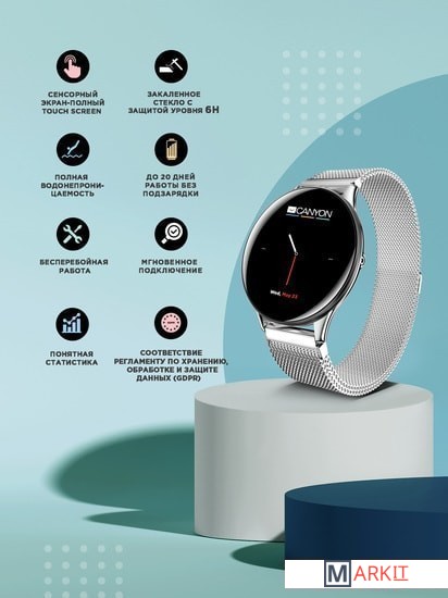 Стильные корпус и ремешок часов сделаны из металла, что придает часам прочность и долговечность. При чрезвычайно тонком корпусе, эти часы обладают внушительным набором датчиков и функций, упрощают управление камерой, позволяют отслеживать уведомления и звонки, мотивируют вас вести здоровый образ жизни. Интуитивное подключение и удобство синхронизации со смартфоном обеспечит приложение Canyon Life.