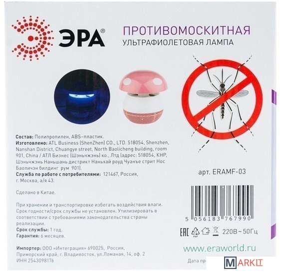 Markit » Уничтожители насекомых, отпугиватели, ловушки » Уничтожитель насекомых ЭРА ERAMF-03