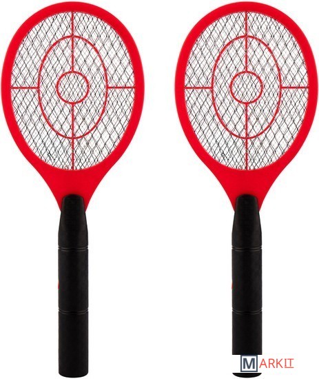 Набор электрических мухобоек RX-450. По внешнему виду мухобойка похожа на маленькую ракетку для бадминтона. При нажатии кнопки на внутреннюю сетку подается ток, в результате насекомое при контакте с ней получает смертельный удар током.Благодаря большой контактной сетке насекомых легко ловить. Мухобойка не оставляет кровавых пятен на стенах, потолке и шторах. Электрическое устройство не выделяет вредных веществ и не имеет специфического запаха. Им могут пользоваться даже аллергики.Питание: 2 батарейки типа LR6 АА (в комплект не входят)Напряжение сетки: 800 В