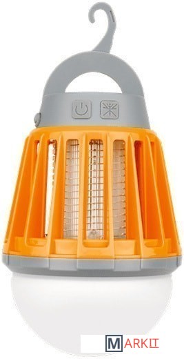 Антимоскитный кемпинговый фонарь REXANT сочетает в себе сразу 2 прибора: кемпинговый фонарь и уничтожитель насекомых. Прибор привлекает насекомых УФ свечением и мгновенно убивает их током. Может использоваться как внутри помещений, так и снаружи, например, для освещения палатки, беседки или просто как фонарь, благодаря влагозащищенному корпусу. Фонарь имеет разные уровни яркости: слабый, нормальный и сильный, также при помощи специальной насадки можно регулировать направленный или рассеянный тип света. Обладает емким аккумулятором и заряжается от сети 220 В, ноутбука, powerbank и любых других устройств, на которых есть USB порт. От аккумулятора устройство работает до 20 часов в режиме фонаря и до 30 часов в режиме уничтожителя!Для максимально интенсивного уничтожения насекомых рекомендум выключить все источники света, перевести устройство в режим «1. Антимоскитная лампа» и установить на высоте 1,80-2,00 метра от поверхности.