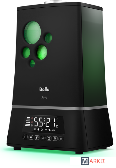 Увлажнитель серии Aura Ballu UHB-1500 - это уникальное сочетание современных технологий увлажнения воздуха, воплощенные в непревзойденном дизайне и гарантирующие исключительную атмосферу комфорта, свежести и уюта в вашем доме. Плавные линии корпуса моментально привлекают внимание, двухуровневая подсветка подчеркивает выразительный черный цвет прибора и придает дополнительную эстетичность его внешнему виду, а специальное покрытие soft touch обладает мягким и приятным тактильным эффектом при его касании. Безупречный комфорт с увлажнителем Aura гарантирован благодаря широкому набору интеллектуальных режимов, включая режим «теплого пара», 3 скоростей увлажнения воздуха, эргономичного пульта дистанционного управления, таймера и автоматического режима работы.ОсобенностиБольшой бак для воды вмещает в себя 7,5 литров, что обеспечивает непрерывное увлажнение в течение 21 часовБезопасное увлажнение в режиме теплого пара за счет нагрева воды до 80°С и ее пастеризацииВстроенная, отключаемая функция ионизации воздуха насыщает воздух полезными для здоровья аэроионамиИнтеллектуальные режимы работы: AUTO, BIO и НочнойТри скорости регулировки интенсивности увлажнения для эффективной работыБлокировка панели управления – защита от детей и от случайного сброса настроекУправление увлажнителем осуществляется как с помощью сенсорной панели управления, так и пультом ДУЯркий, контрастный дисплей в режиме реального времени позволяет отследить текущий уровень влажности, остаток воды в резервуаре, установленные режимы работыTimer на отключение (интервалы времени: 1-24 часов)Фильтр с ионнобменной смолой (AQUA фильтр) очищает водопроводную воду от солей жидкостиvМягкая двухуровневая подсветка резервуара и базы позволяет использовать прибор, в том числе как ночникВстроенная ароматическая капсула