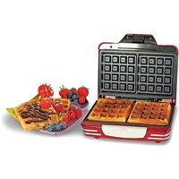 Дизайн вафельницы, как и всех устройств линейки Party Time, выполнен в стилистике 50-х годов прошлого века.Конструкция прибора позволяет печь одновременно пару пышных вафель квадратной формы. Благодаря антипригарным пластинам вафли подрумяниваются, но не пригорают.Готовить с 187 Waffle maker очень просто. Жидкое тесто для вафель подготовьте заранее. Включите прибор в сеть. О том, что пластины нагрелись и прибор готов к работе, сообщит световой индикатор на крышке вафельницы. Аккуратно заливайте тесто в формы и, закрыв крышку, ждите от 5 до 8 минут. Готовые вафли легко извлекаются. Вам останется только полить их шоколадом, ягодным соусом, медом и т.п.Вафельницу можно хранить в вертикальном положении, так она будет компактна и займет совсем немного места в ящиках на вашей кухне.
