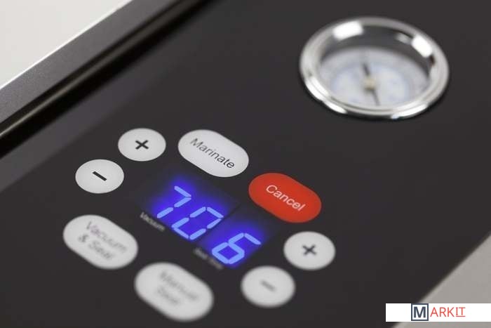 Манометр для отображения текущего давления.Закрытая вакуумная камера с прозрачной стеклянной крышкой.Двойной сварной шов шириной до 30 см.В комплекте:1 запасная сварочная штанга, 30 профессиональных вакуумных пакетов 20x30 см.