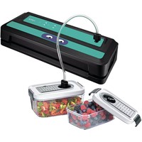 - вакуумный упаковщик- 5 пакетов для вакуумирования размерами 20х30 см- рулон плёнки для вакуумирования размерами 20х200 см- шланг для откачки воздуха в контейнеры