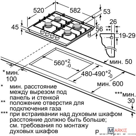 | Размеры ниши для встраивания |