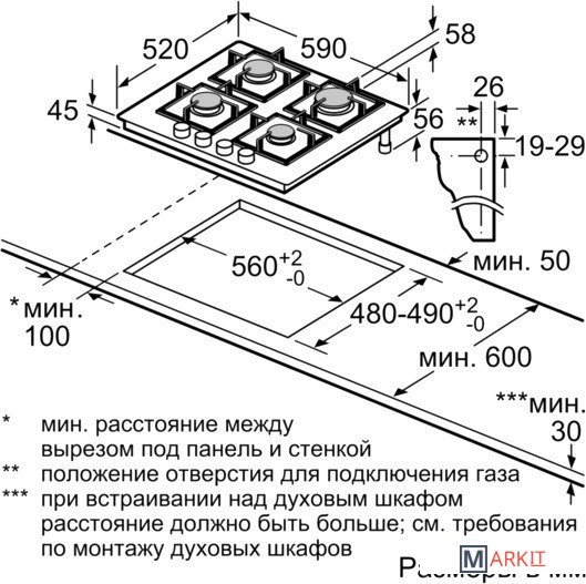 | Размеры ниши для встраивания | |