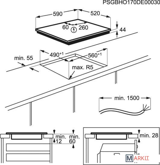 Левая ближняя 2300/3200W/210mmЛевая дальняя 2300/3200W/210mmПравая ближняя 1400/2500W/145mmПравая дальняя 1800/2800W/180mm |