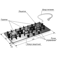 Подробная информация о конфорках Передняя правая, кВт 1,75Передняя левая, кВт 3,2 (трёхконтурная)Центральная, кВт 1