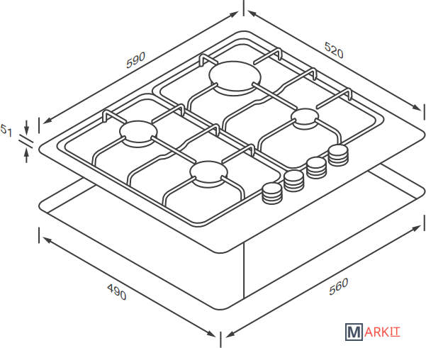 | Трёхуровневые конфорки | ✘ |