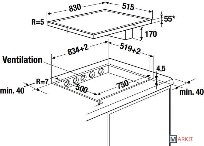 Модель обладает встроенной вытяжкой.Производительность вытяжки: 530 / 620 м3/часУровень шума вытяжки:Минимальный: 45 дБМаксимальный: 55 дБИнтенсивный режим: 68 дБ