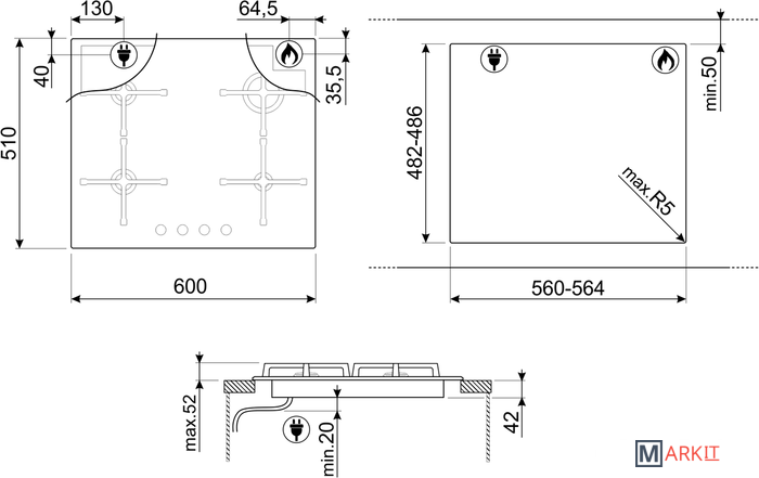 | Газовые конфорки WOK | ✘ |