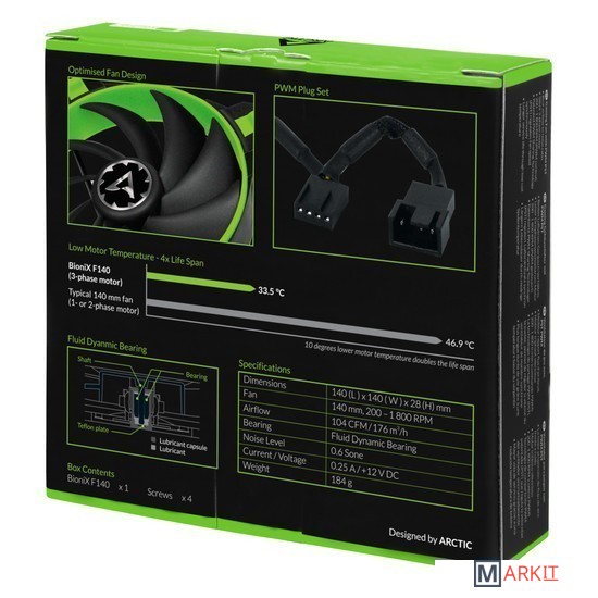 Markit » Системы охлаждения » Вентилятор для корпуса Arctic BioniX F140 (зеленый)