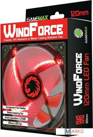 Markit » Системы охлаждения » Вентилятор для корпуса GameMax WindForce 4x Red LED (120 мм) [GMX-WF12R]